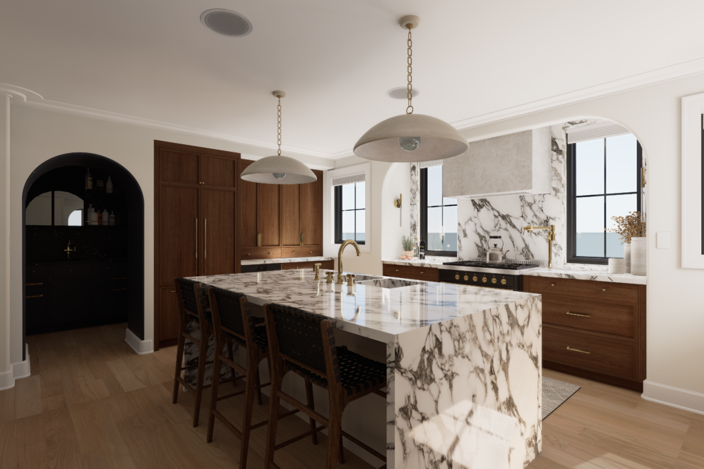 Renderings are often developed from the SketchUp model and technical drawing set, allowing the design to move seamlessly from documentation to visualization.
