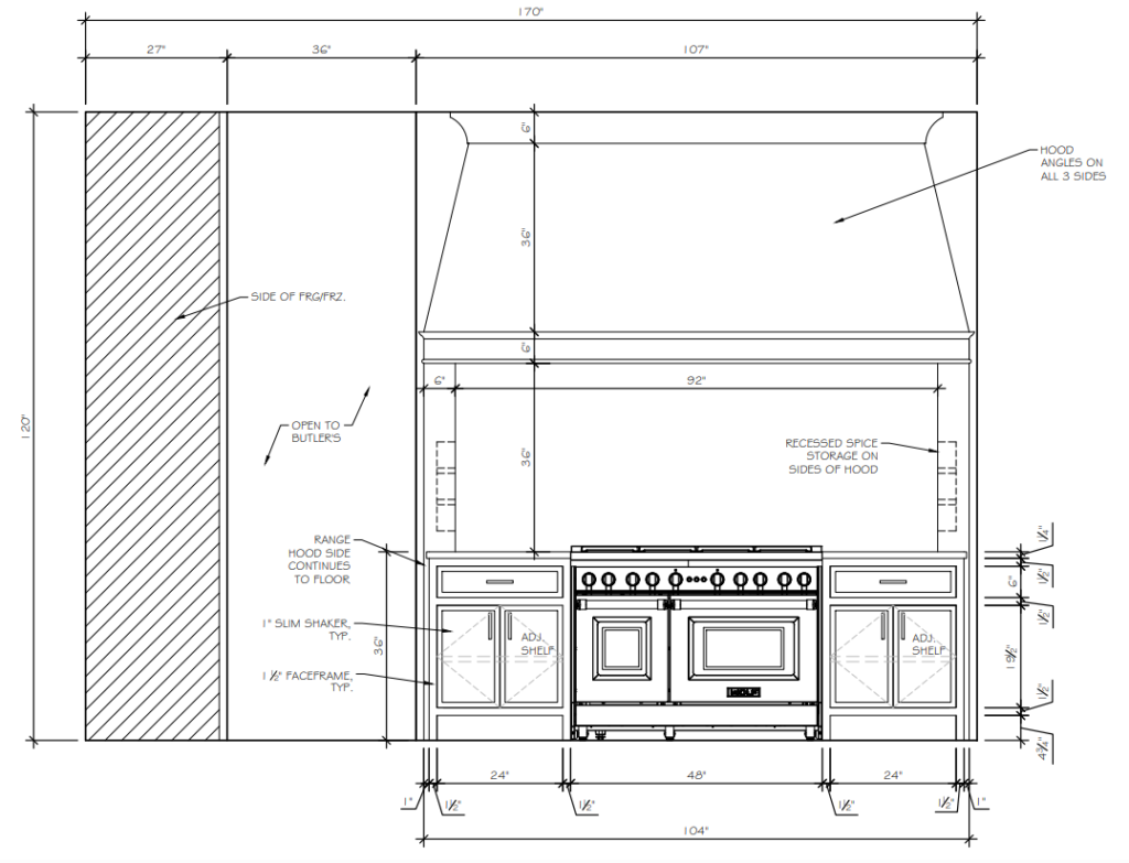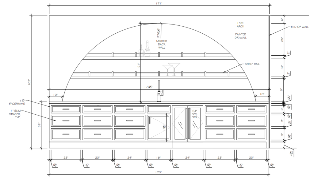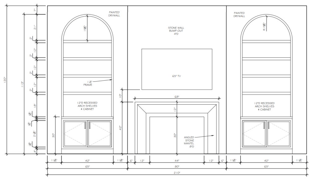 Elevations bring vertical surfaces to life. I produce detailed elevations that correspond to the floor plan, illustrating cabinetry, appliances, fixtures, materials, and finishes so that every element is understood.
