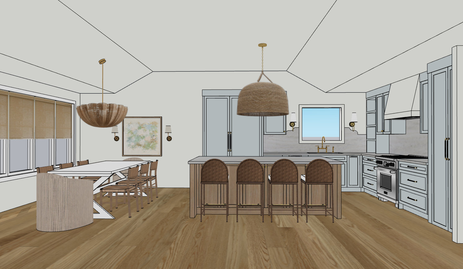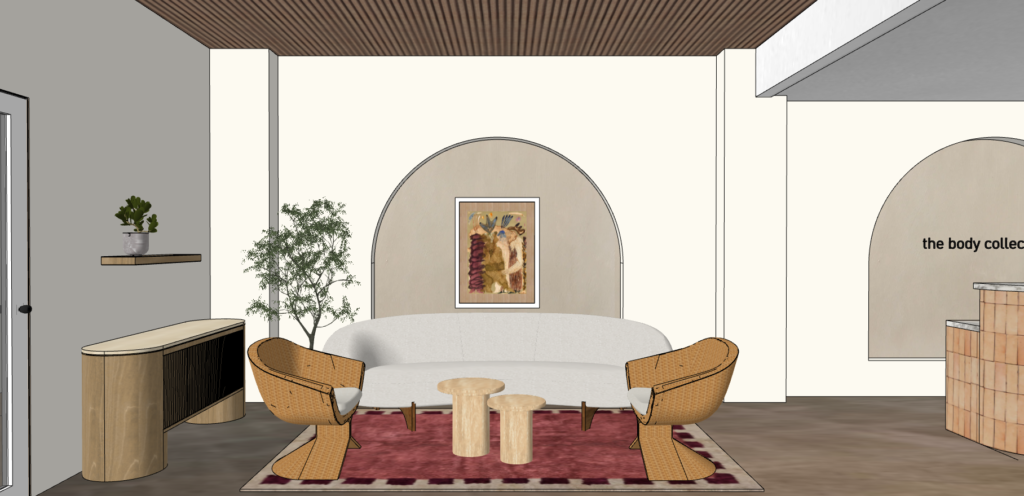 SketchUp models help visualize the design in three dimensions, making it easier to understand spatial relationships, proportions, and key elements within a space.